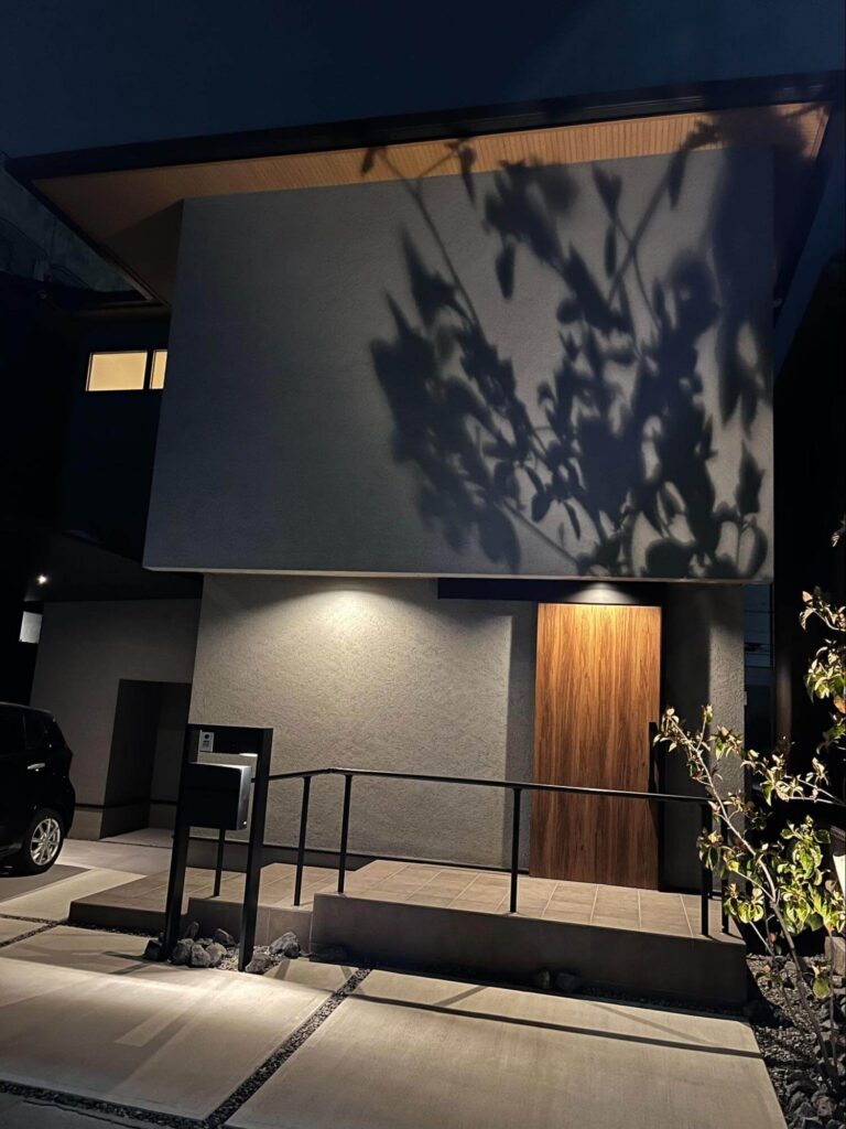 ご主人:あと僕は、やはり外観がお気に入りです。夜、木の影が映る外壁を眺めながら外でビールを飲むのが最高です。近所の人からは「あの家のご主人、また自分の家眺めながらビールを飲んでる…」って思われてるかもしれないけど(笑)
