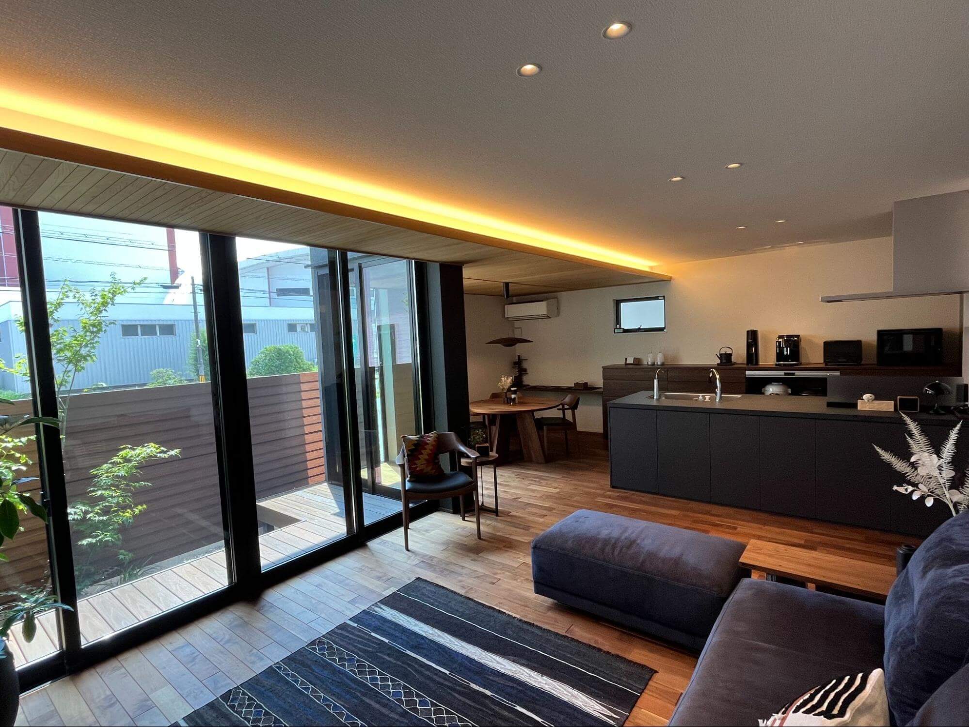 ご主人:それと、リビングにカーテンをつけないという暮らし方。「カーテンレスにしたい」と設計士さんには伝えていて。目隠しフェンスを後からつけて実現しました。外とつながっているような抜け感がすごくいいです。